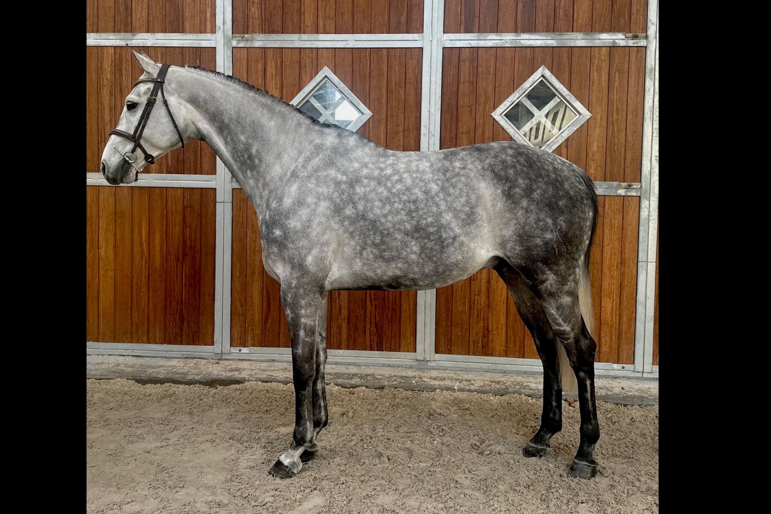 Clintolino is an exceptionally beautiful and amiable 7-year-old gelding who has all the qualities to become a top performer in show jumping. With competition experience up to 1.20/1.30m, he has already proven his reliability and eagerness to work. At home, he effortlessly demonstrates his ability with jumps up to 1.40/1.45m, consistently showing power and sharp reflexes.