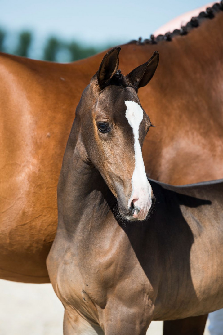 Dam Real de Kerizac (s.Kannan) jumped at 1.30m level herself and her first offspring Jallu (s.Vip de Cleudrain is also active at this level. Granddam Jaika du Mesnil (s.Arpege Pierreville) produced the 1.60m jumper Noumea Deux (s.Baloubet du Rouet) and the 1.50m horse Darling de Kreisker (s.Vivaldi du Seigneur). Farther along the dam line we encounter the World Cup and Nations Cup winner Baladine du Mesnil (Xavier Coumont France). The pedigree of Babalou DB & BZ is brimming with sports achievements and paired to the Grand Prix stallion Balou du Reventon, it is clear this filly would make a fantastic asset to your sports stable and/or breeding program.