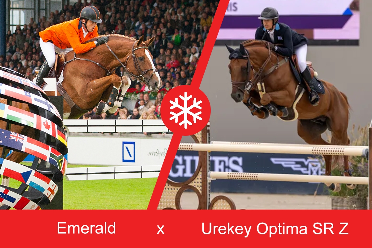 An interesting pairing. Here, the five-year-old mare Urekey Optima is paired with the Olympic Emerald. The dam was bred from a sister of Cazan van’t Schaeck, who won the Grand Prix qualifier in Opglabeek last month with Theodore Boris. This BWP-approved stallion is also the brother of the 1m50-classified Oryzon van’t Schaeck. And all of them are descended from Carrera de Muze. She produced the well-known Grand Prix horses Caipiranja (Tiffany Foster), Demoiselle de la Pomme (Vicky vd Poel) and J’Adore van’t Schaek (Marlon Modolo Zanotelli). The fact that the line goes back to championship mare Walnut de Muze, owned by Harrie Smolders, confirms the strength of the line.