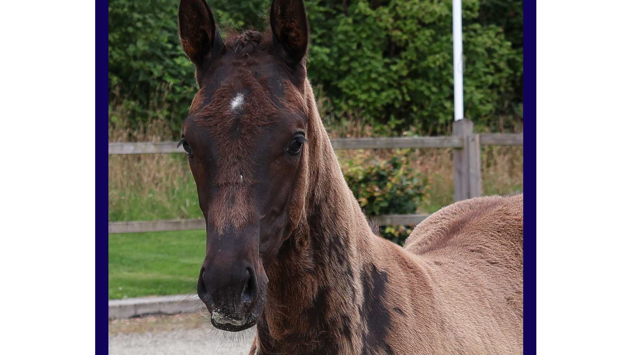 Valuta JO komt van One Million, die dressuurnakomelingen met expressieve gangen geeft. De moeder Hirma la Douce voegt predicaten toe. Een commercieel dressuurveulen met uitstraling.